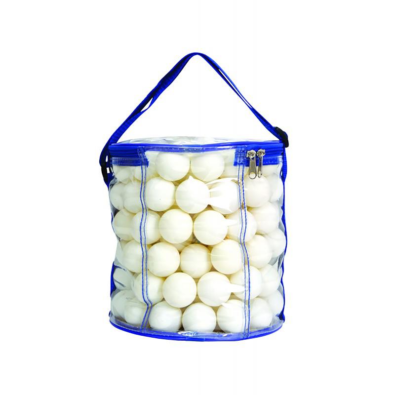 Veske med 144 stk bordtennisballer.