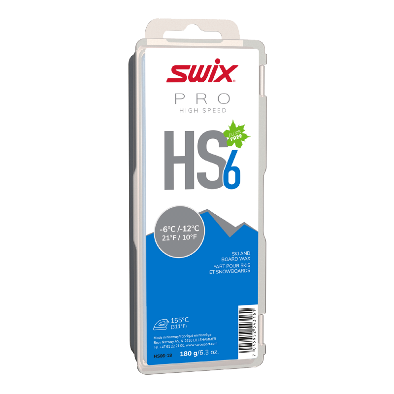 Denne voksen er meget allsidig. Bruksområdet strekker seg fra underlagsvoks for pulver til racingvoks og base-prep voks for kaldski. HS6 har god holdbarhet og gir meget god gli både på natur- og kunstsnø. Hastigheten på smørejernet bør være ca. 8-10 sek. på en skøyte- eller alpinski. Voksen kan varmes opp på nytt etter nedkjøling til romtemperatur (10 min.) for bedre holdbarhet. Det er viktig å ha et godt smørejern for å få effektiv smelting av voksen. HS6 kan brukes som racingvoks alene eller som underlagsvoks for toppinger. Anbefalt smørejerns temperatur: 145°C.