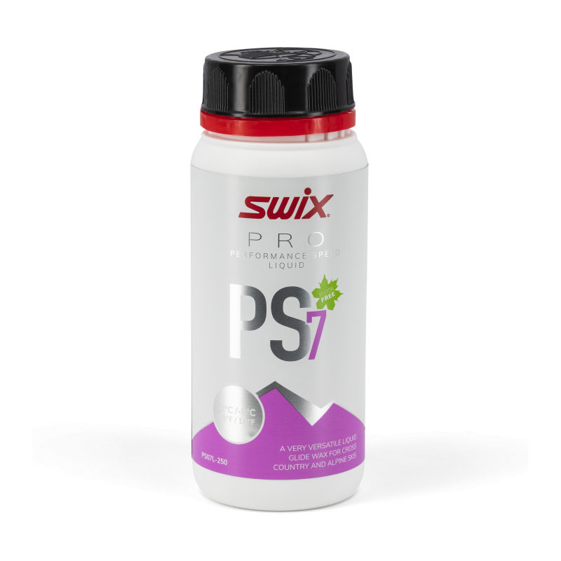 PS7 Liquid Violet 250ml er en allsidig flytende glider for langrenn og alpint, med anbefalt temperaturområde fra -2°C til -8°C. Fungerer godt som underlag for racingprodukter, som racingglider alene eller som grunnprepp for ski i kaldere forhold. Har god slitestyrke og gir meget god glid på både natur- og kunstsnø. Flasken har en bred åpning for enkel påføring. Bruk filtkork (T21) eller Fiberlene (T151) til påføring, la tørke i 2 minutter, og poler med en myk nylonbørste (T166B) for optimal ytelse.